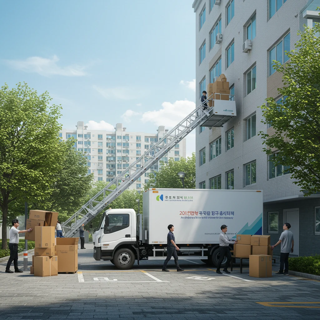 엘리베이터가 없거나 가구가 크고 무거운 경우에는 사다리차가 가장 안전하고 효율적입니다.