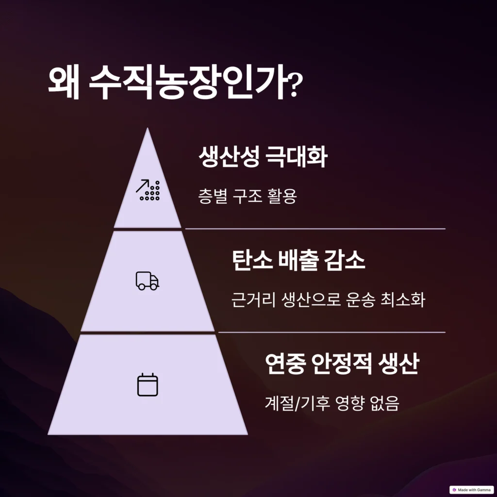 | 수직농장 정의 | 실내 환경에서 층별로 작물을 재배하는 첨단 농업 방식 |