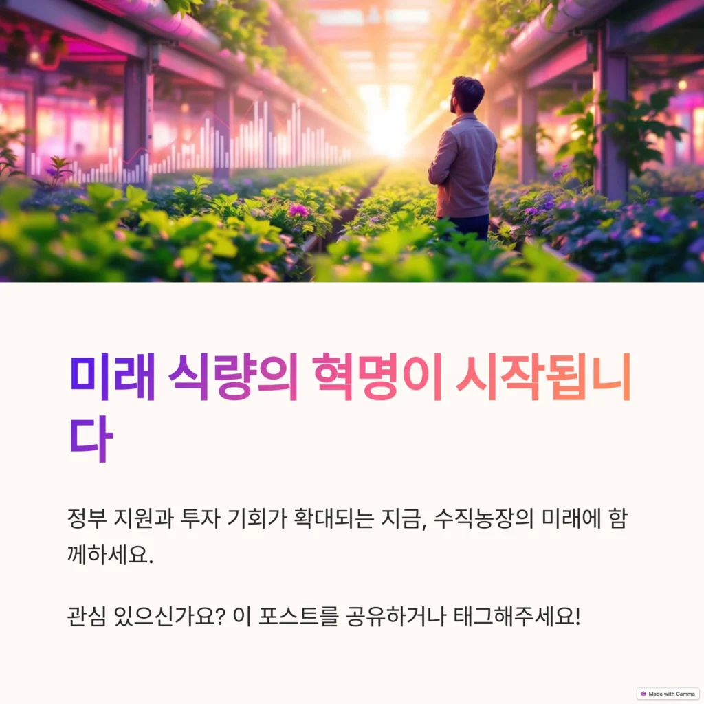 수직농장은 미래 농업의 새로운 대안으로서 단순한 트렌드를 넘어 산업 전반에 변화를 불러오고 있습니다. 환경 보호, 식량 안보, 도시 재생, 로컬푸드 유통 등 여러 방면에서 긍정적 파급력을 보이며, 국내외에서 이미 수많은 성공 사례가 나오고 있습니다. 특히 도시형 스마트팜이 부상함에 따라 젊은 창업자들과 IT 기업들도 관심을 갖기 시작했고, 이는 곧 농업이 기술 중심 산업으로 재편되는 흐름을 상징합니다. 여러분이 관심 있는 분야가 기술, 식품, 환경, 교육 중 어느 쪽이든 수직농장은 분명 새로운 비즈니스 기회를 제공할 수 있습니다. 오늘의 정보가 여러분의 인사이트를 넓히는 데 도움이 되었기를 진심으로 바랍니다.