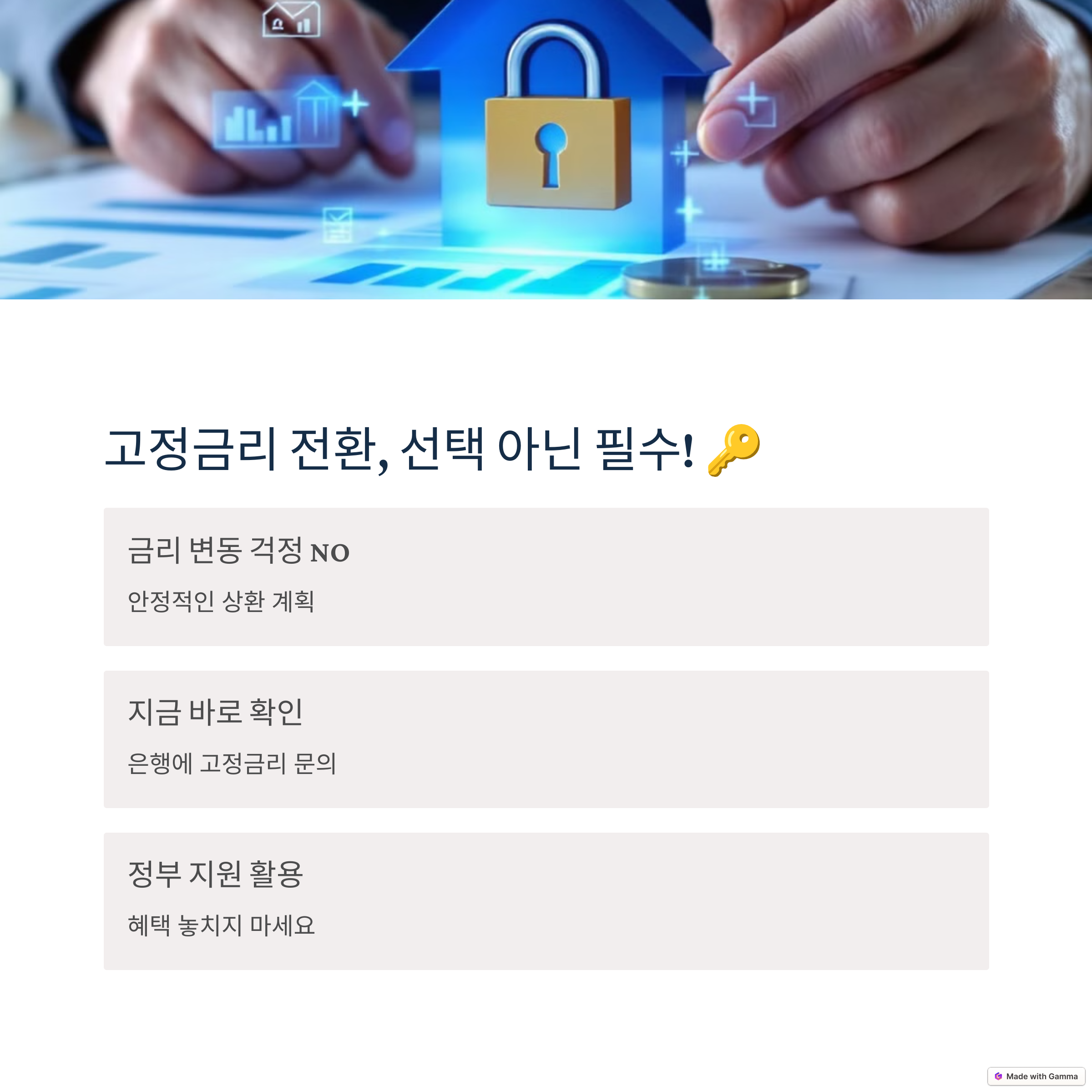 | 금리 변동 위험 | 변동금리는 금리 상승 시 상환 부담이 커짐 |