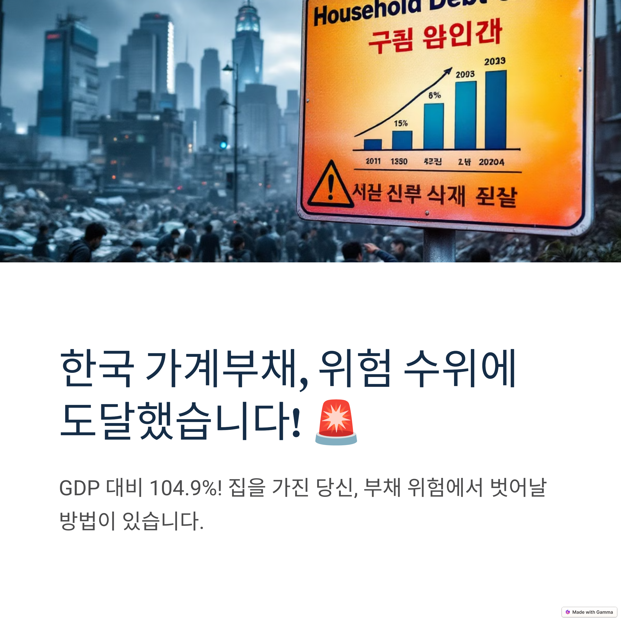 | GDP 대비 104.9%로 위험 수준 초과 | 차주 단위 총부채상환능력 기준 적용 | 전문가 상담으로 중장기 전략 수립 |