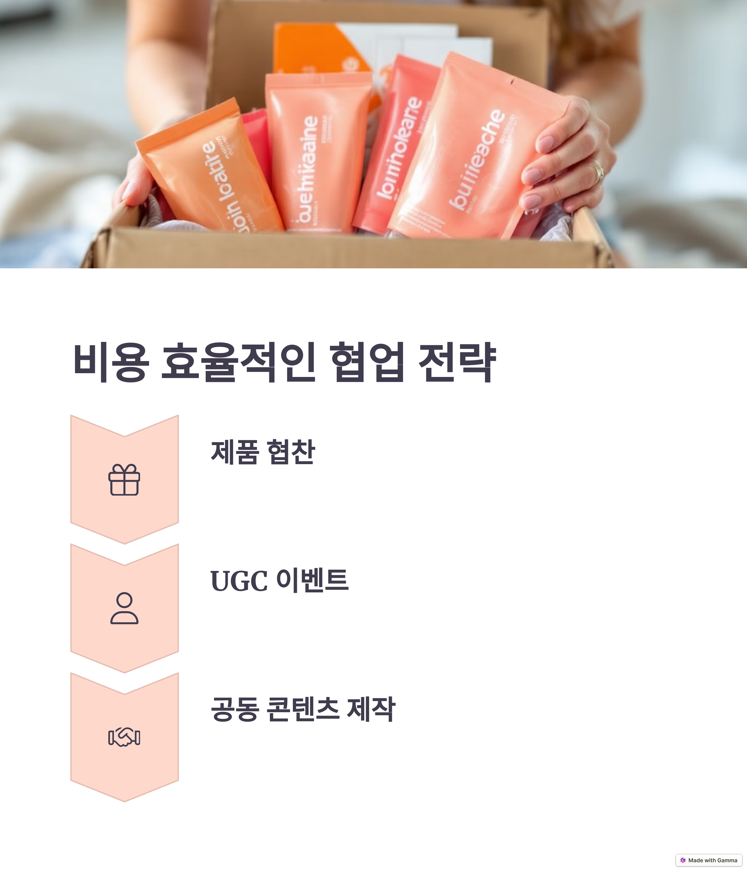 | 예산 없이 시작 | 제품 제공 또는 협업 콘텐츠로 비용 절감 |