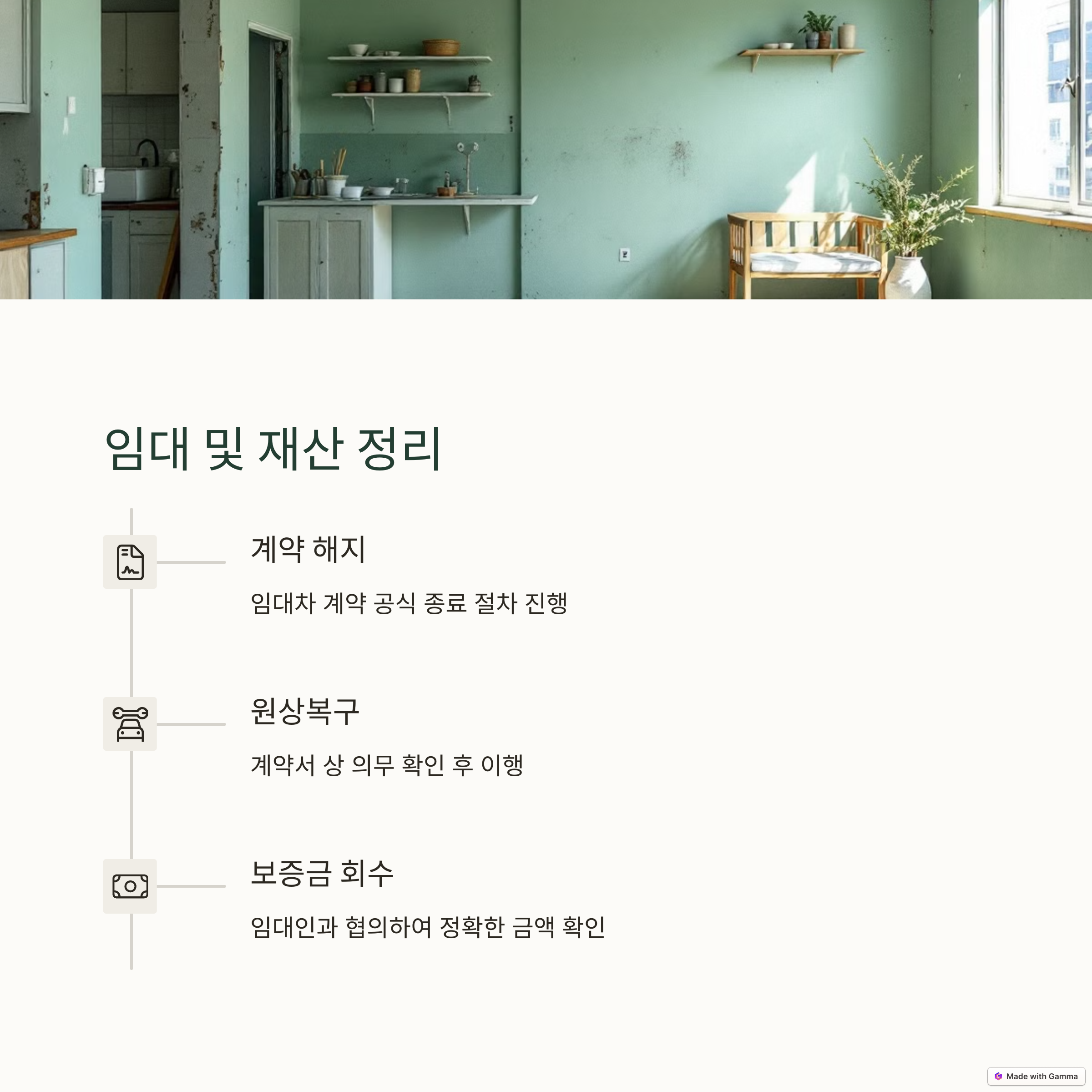 폐업과 함께 진행해야 할 또 다른 중요한 항목은 사업장 정리 및 원상복구입니다. 임대차 계약 종료 시에는 원상복구 의무 조항을 확인하고, 점포 철거 및 청소를 포함한 원상복구 작업을 진행해야 합니다. 이 과정에서 예상보다 많은 비용이 발생할 수 있지만, 중소벤처기업부의 희망리턴패키지를 통해 점포철거비 일부를 지원받을 수 있습니다. 또한, 근로자를 고용 중이었다면 퇴직금 정산과 4대 보험 상실 신고를 누락 없이 해야 하며, 자영업자 본인이 고용보험에 가입되어 있었다면 폐업 후 실업급여 신청도 가능합니다.