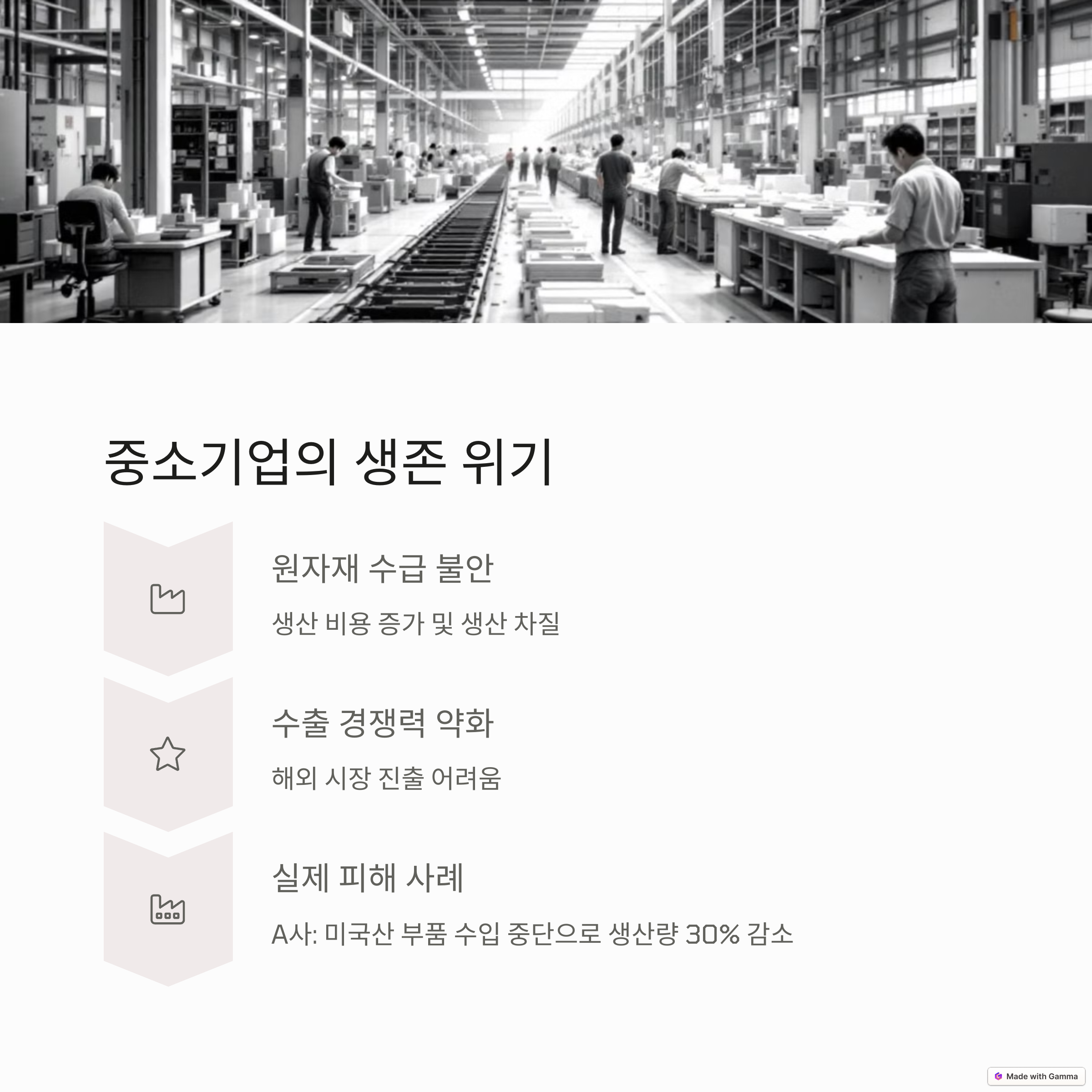 관세 외에도 공급망 혼란은 중소기업 및 자영업자에게 심각한 타격을 안겼습니다. 반도체, 부품, 원자재 등이 제때 공급되지 않으면서 제조업 기반 소상공인들은 납기 지연, 고객 이탈, 비용 증가로 3중고를 겪었습니다. 또한 주요 부품 가격 상승으로 생산 원가가 올라 제품 단가를 유지하기 어려워졌고, 결과적으로 시장 내 가격 경쟁력이 약화되었습니다. 이러한 연쇄 반응은 단순히 한 산업군에 그치지 않고 유통, 마케팅, 서비스 영역까지 확산되어 지역 경제 전반에 파급 효과를 일으켰습니다.